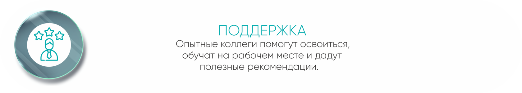 Опытные коллеги помогут освоиться, обучат на рабочем месте и дадут полезные рекомендации.