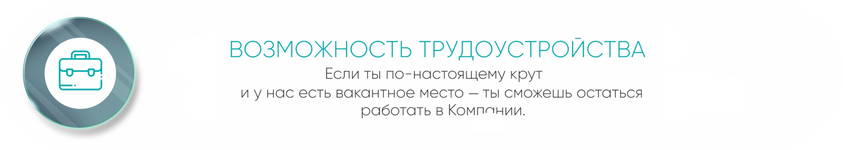 Стажировка для нас — это возможность найти молодых специалистов и продолжить сотрудничество с самыми перспективными, ответственными и целеустремлёнными. Для этого Компания готова вкладывать свои время, деньги и силы в их обучение